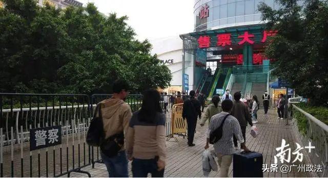 “请前往……的旅客注意,您乘坐的17:40车辆马上就要出发了,请还没有上车的旅客马上检票上车……”从广州火车站南广场经人行天桥到流花车站(广州汽车客运站),大约是一百步的距离。